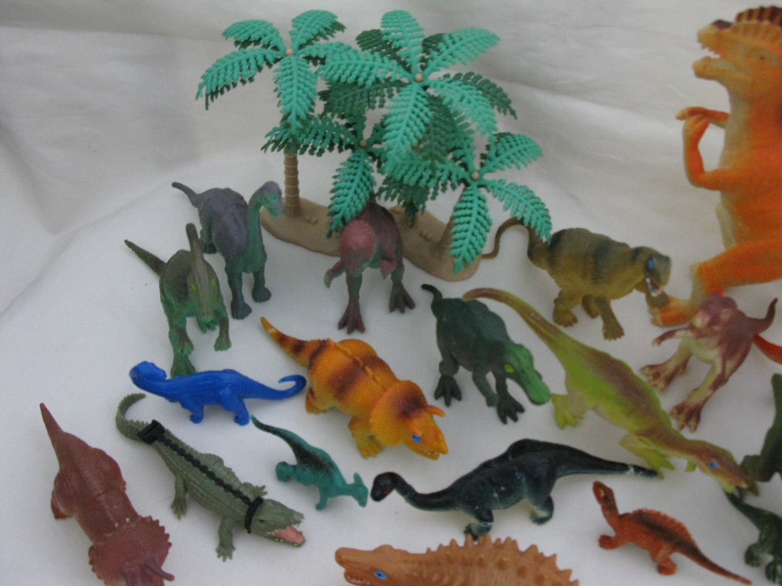 Large Lot Of 24 Plastic Toy Dinosaurs Assorted Colors Sizes Large Small 2 Tree Ebay